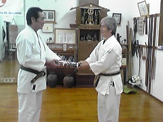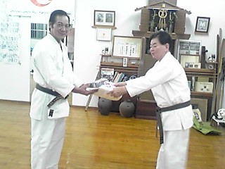 <奥浜先生への範士九段帯・空手衣贈呈模様> |