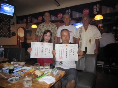 7月9日(月)、石川道場では、先の昇段審査で初段に合格した、石井達生会員、島袋リサ会員の祝賀会を開催しました。