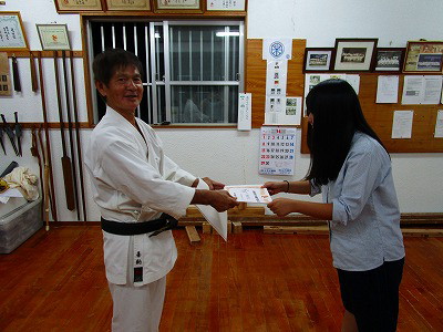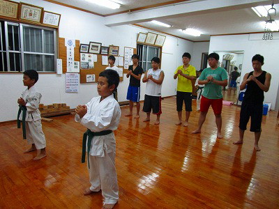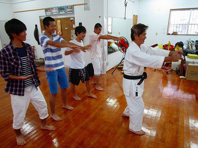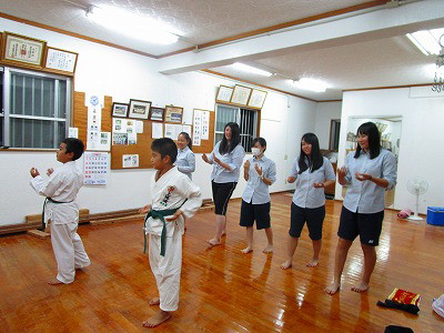 喜納先生が優しく教えてくれたので、初心者の私でも楽しく空手を経験することができました。道具を使った技も迫力があってかっこよかったです。貴重な体験をさせて頂いてありがとうございました。 |